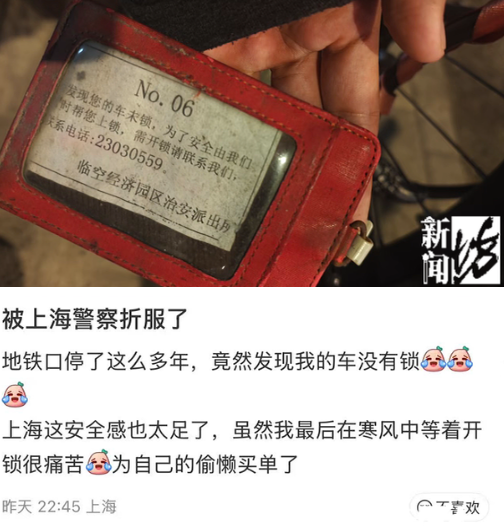 就感觉很神奇,因为第一次遇到这种事情,当时4号口附近有很多很多的车,我就想太奇怪了,太神奇了,民警怎么会在这么多车里面把我的车找到,然后锁上呢,很神奇,又很有安全感。
