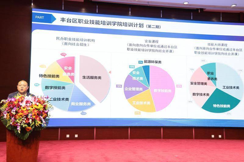 此次活动现场特别发布了“丰台区职业技能培训学院培训计划(第二期)”,涵盖“民办培训、企业定制、技能大师、公益普惠”四大课程板块,满足了不同群体、不同层次的技能提升需求,形成了覆盖广泛、重点突出、特色鲜明的技能培训供给网络。